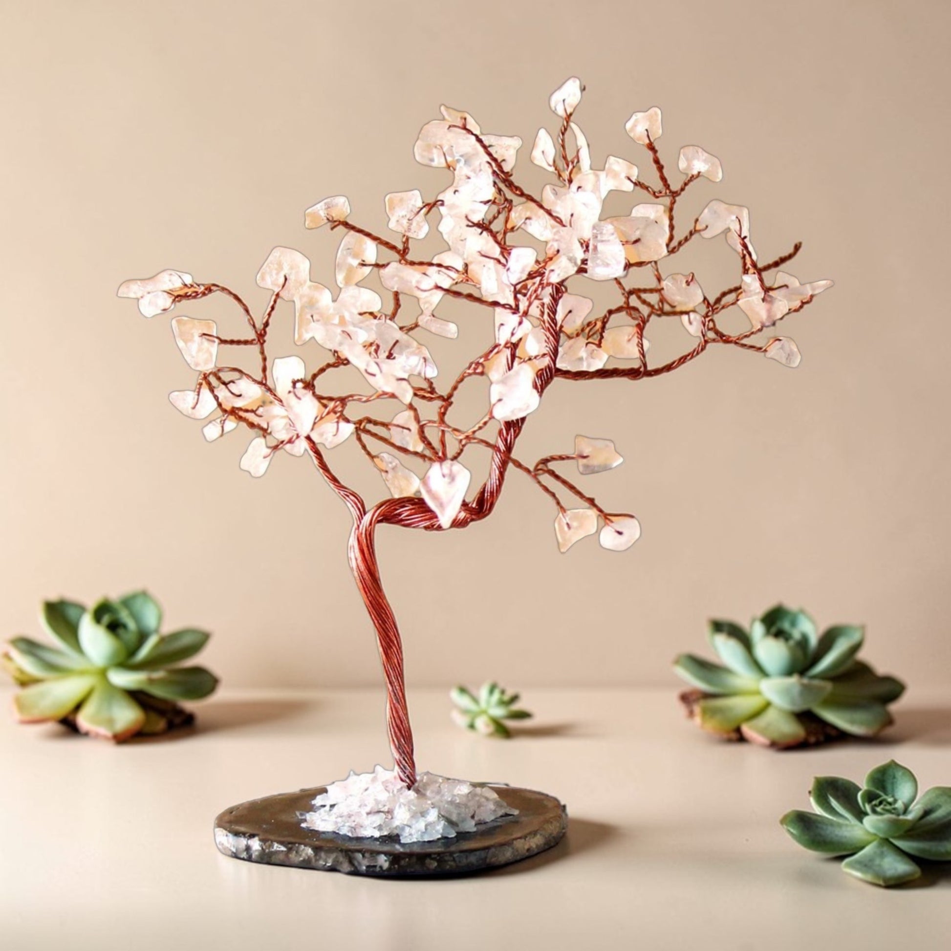 Bergkristal Wensenboom op Zwarte Agaat Basis - 100 Stenen
